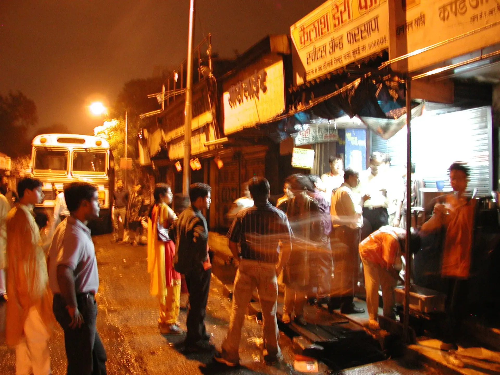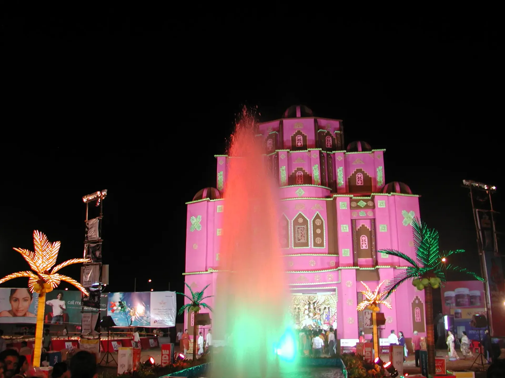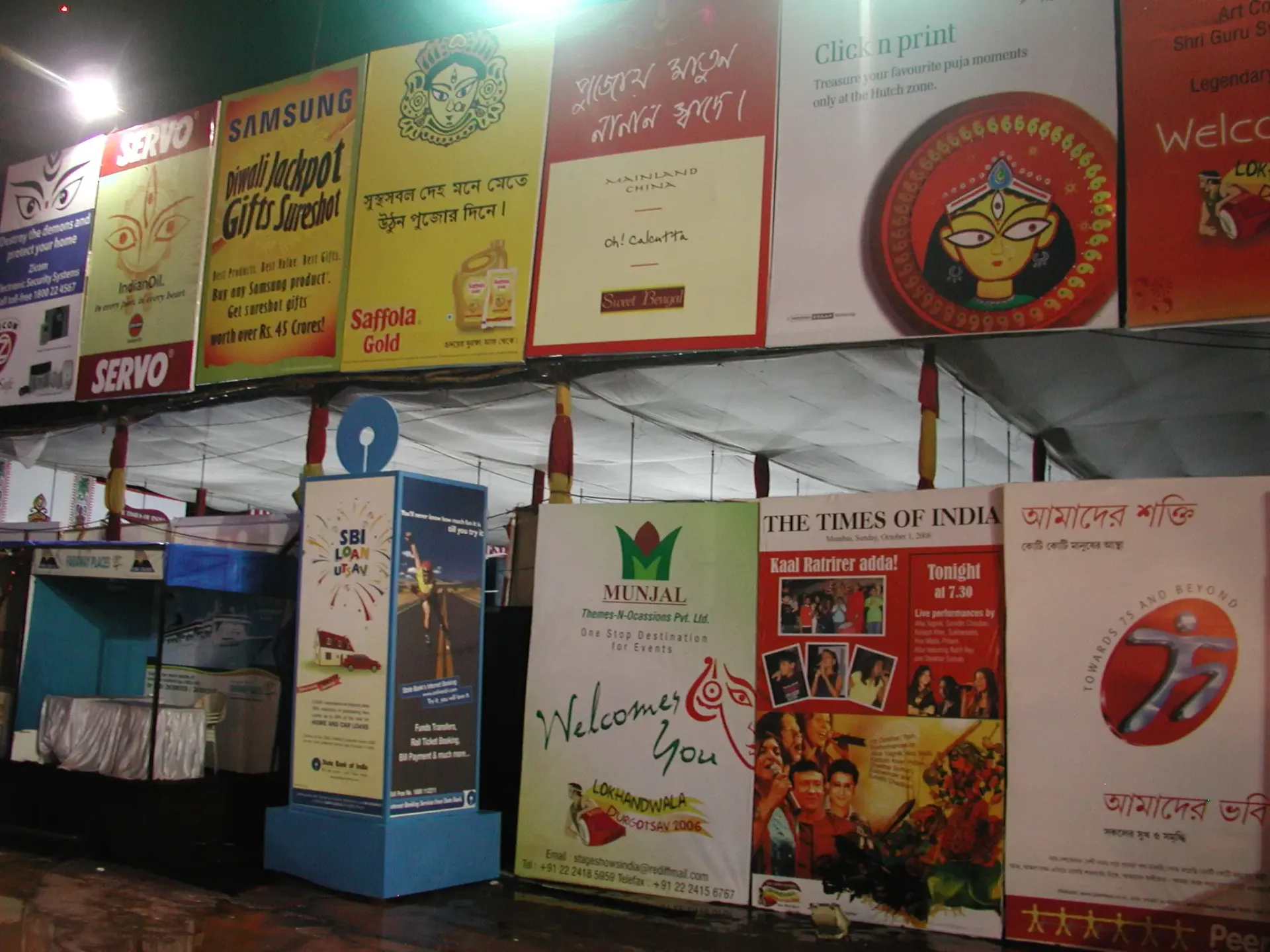 This year, we joined a bus tour to visit different puja pandals across Bombay. While the scheduled midnight start time was delayed, we eventually embarked on our journey. Unfortunately, heavy rain transformed Shivaji Park into a muddy field, forcing us to navigate through ankle-deep water. Despite the challenges, the night was memorable, if exhausting.